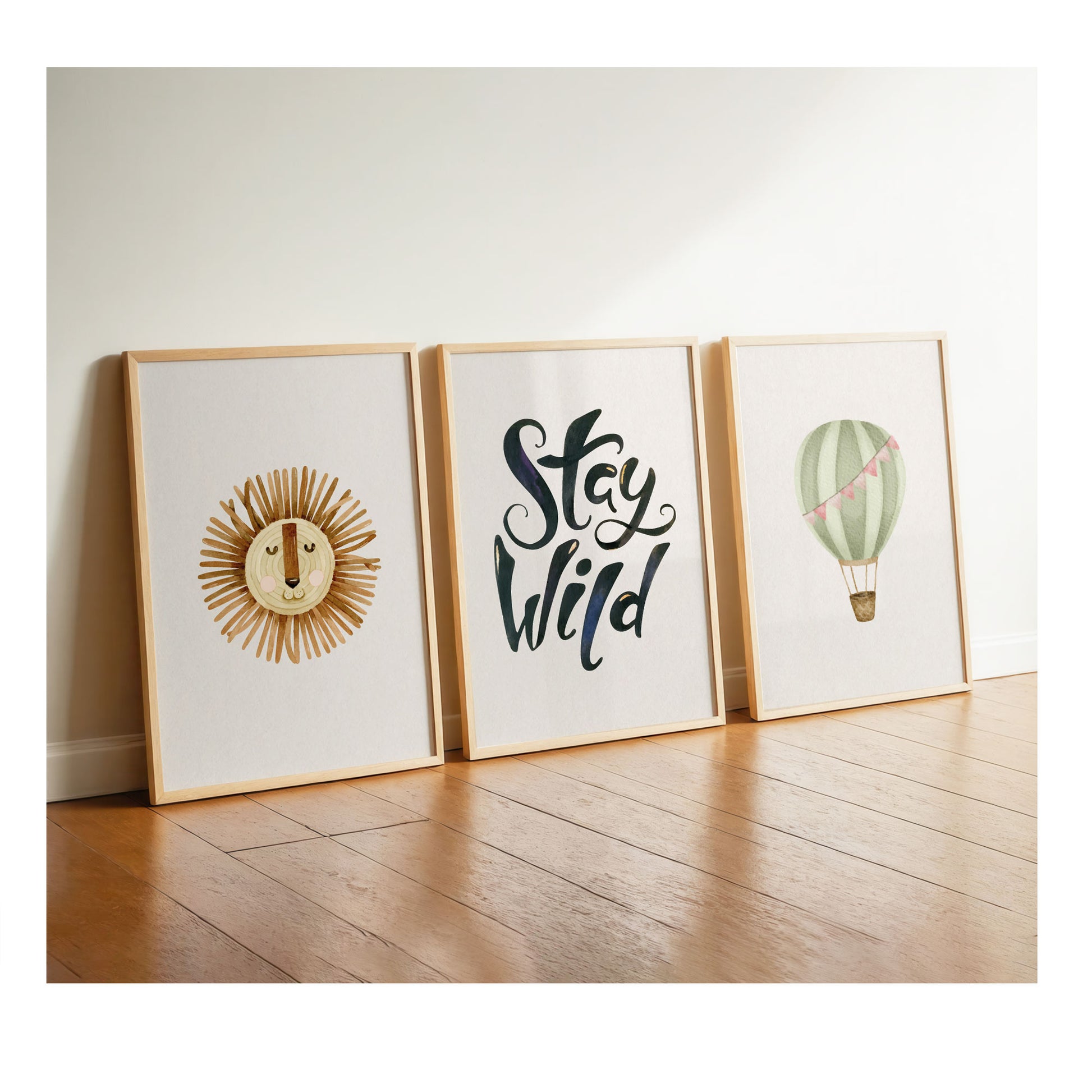 Boho Lion | Stay Wild | Hot Air Balloon | Set of 3 Children's Posters