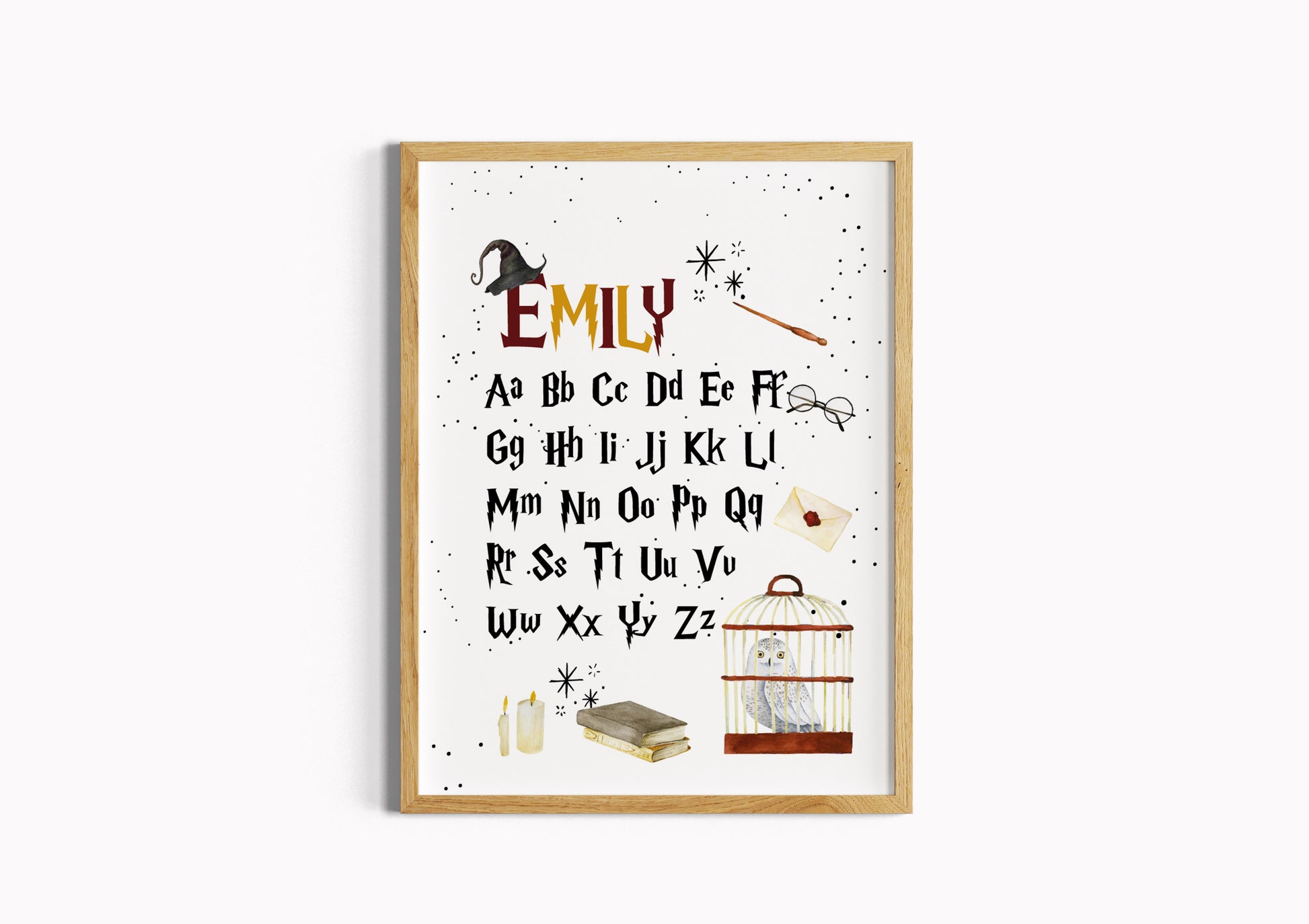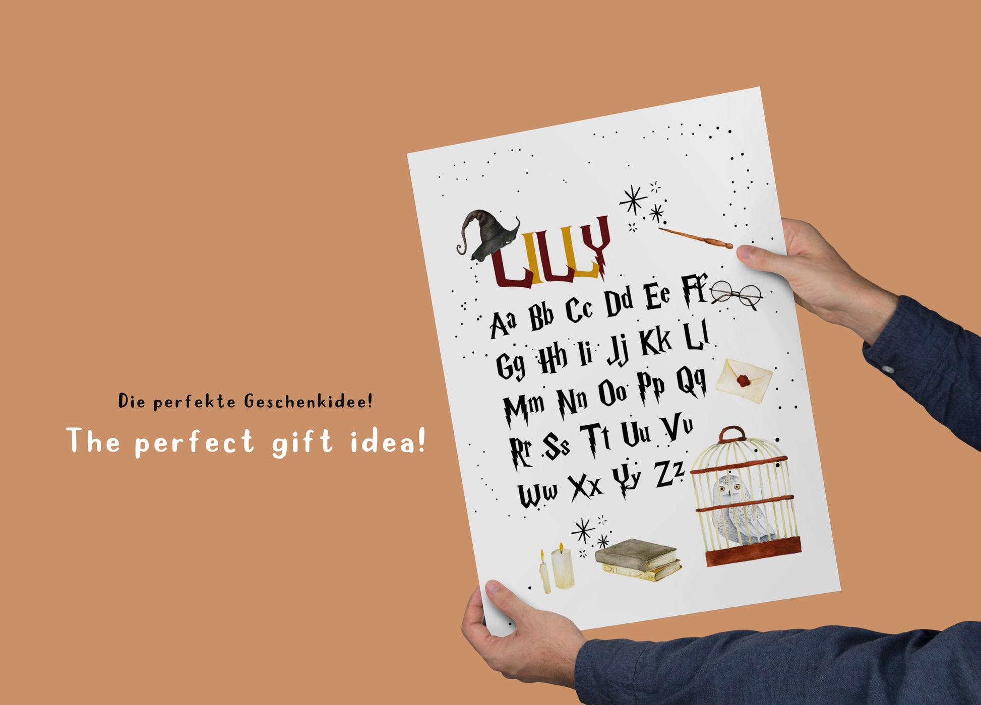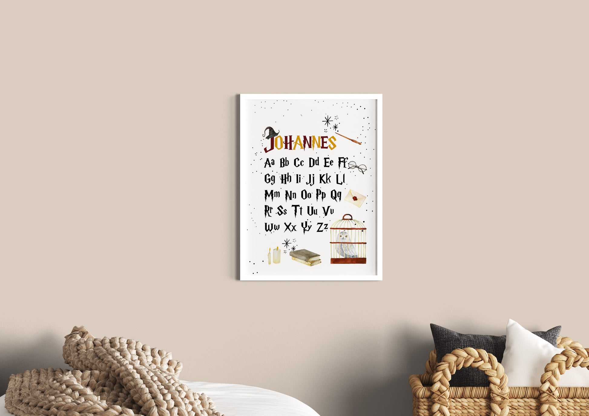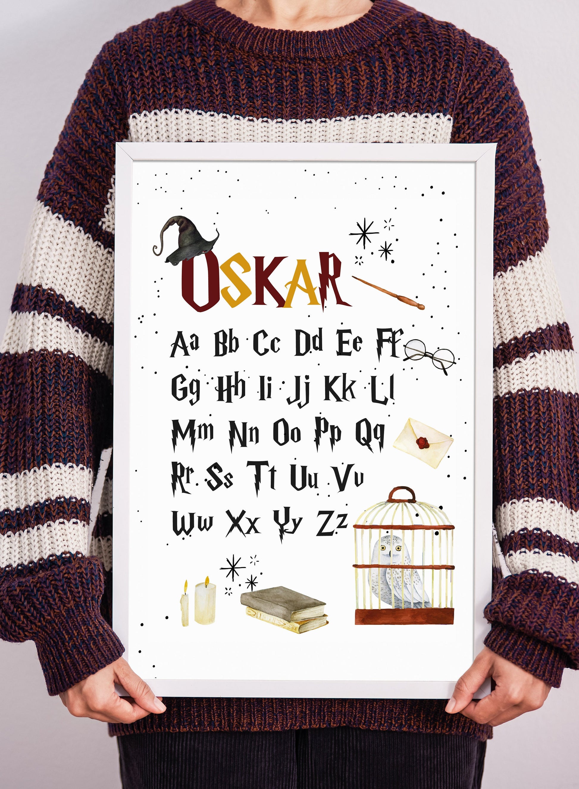Potter Hedwig Lernposter ABC für den Schulstart ist personalisiert mit Namen und ist das perfekte Geschenk für Kinder, Grundschüler, Kleinkinder, Schulanfänger, Vorschüler oder als Deko für das Mädchenzimmer und Kinderzimmer.