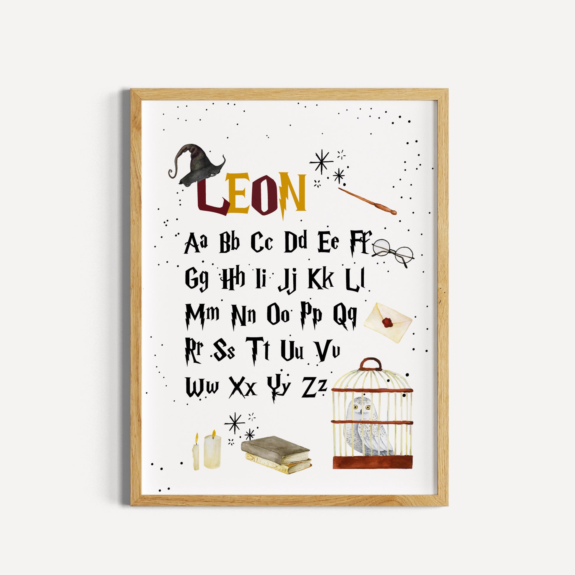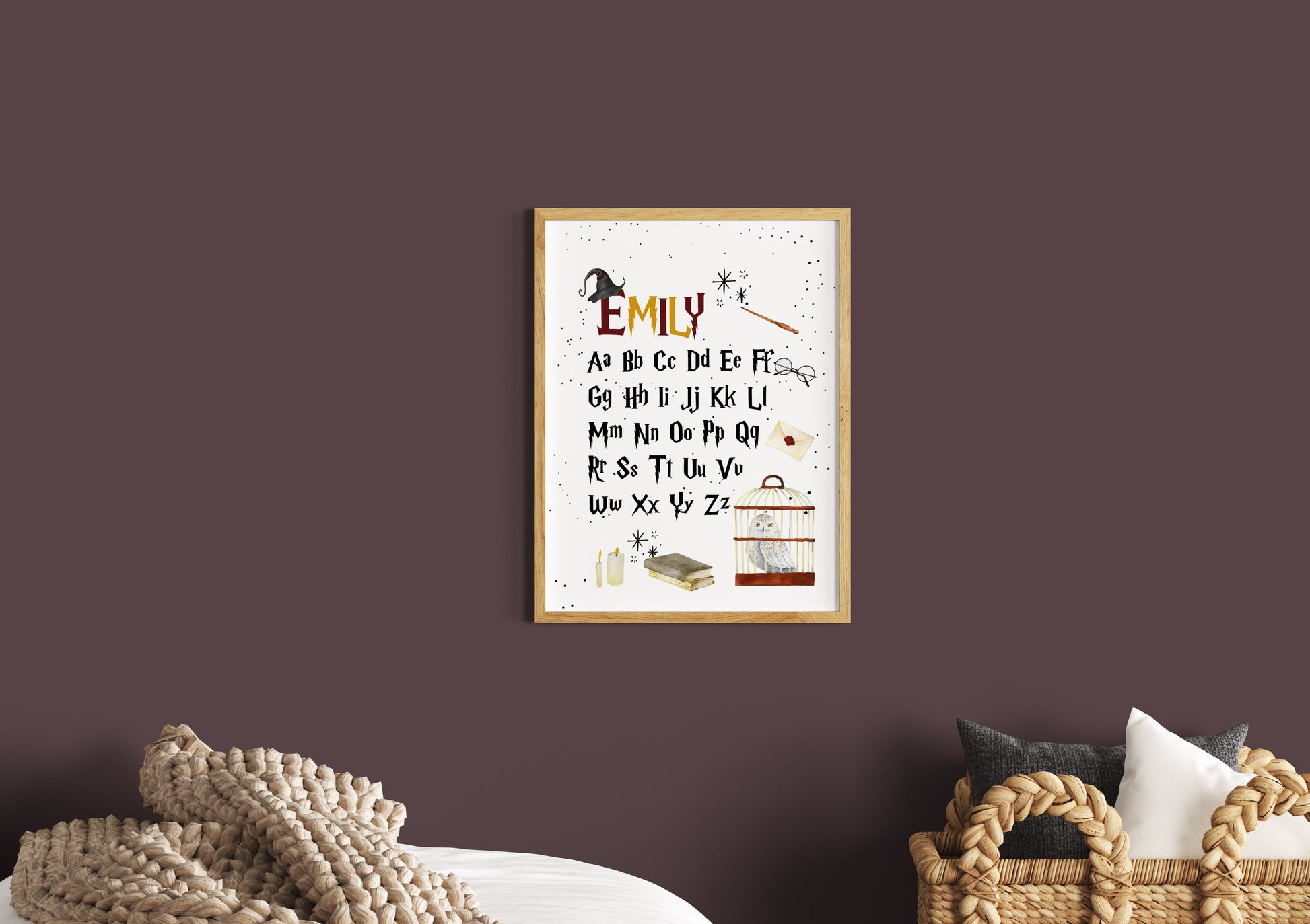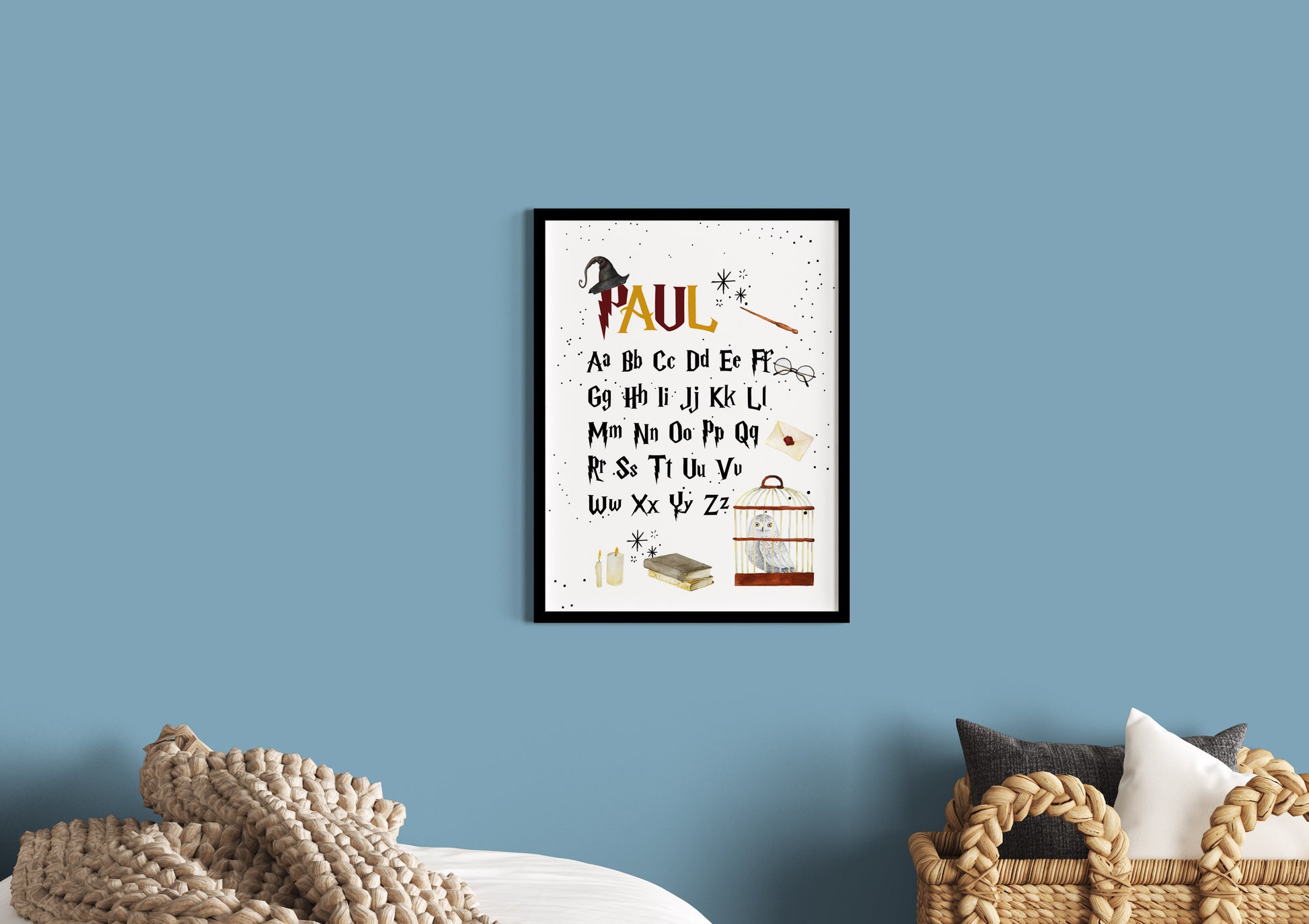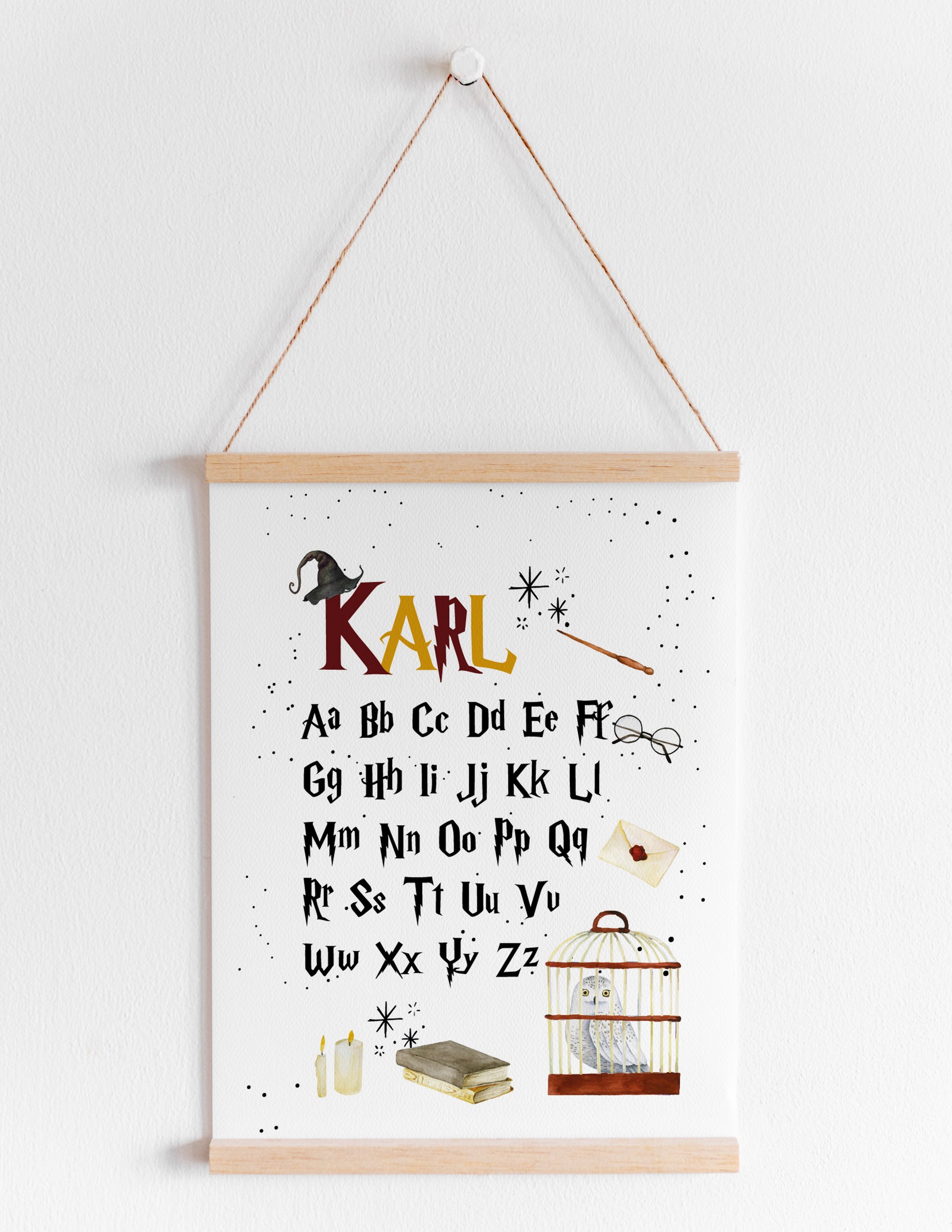 Potter Hedwig Lernposter ABC für den Schulstart ist personalisiert mit Namen und ist das perfekte Geschenk für Kinder, Grundschüler, Kleinkinder, Schulanfänger, Vorschüler oder als Deko für das Mädchenzimmer und Kinderzimmer.