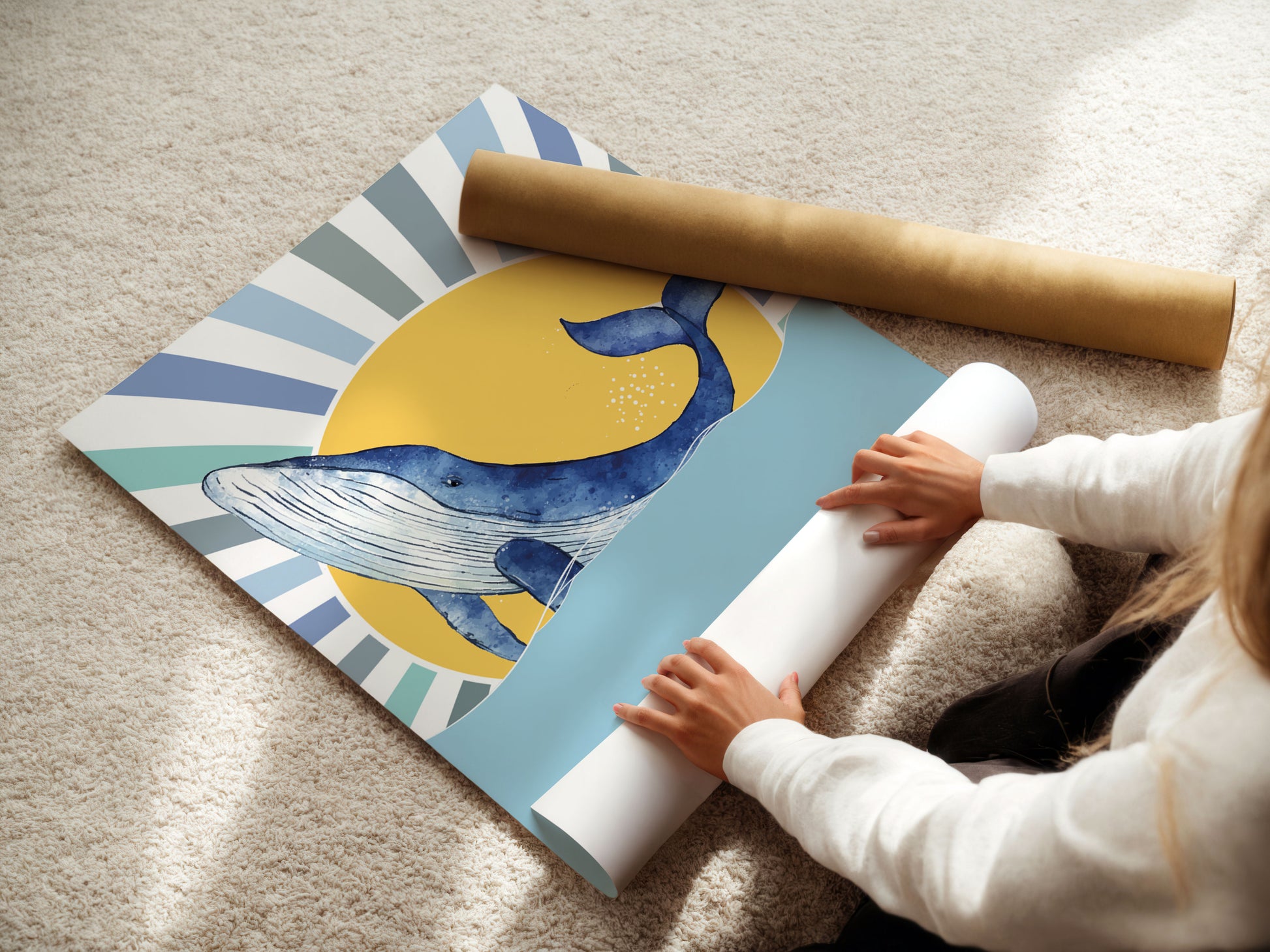 Das maritime 3er Posterset mit süßen Meerestieren: Einer Schildkröte, dem Namen und einem Wal mit einer Sonne im asiatischen retro Look verzaubert jedes Kinderzimmer bzw. Jungenzimmer. Diese vintage Wandbilder eignen sich nicht nur als Kinderzimmerdeko, sondern auch als Geschenkidee für Kleinkinder, Kinder und zur Taufe oder Geburtstag (z.B. ersten Geburtstag).
